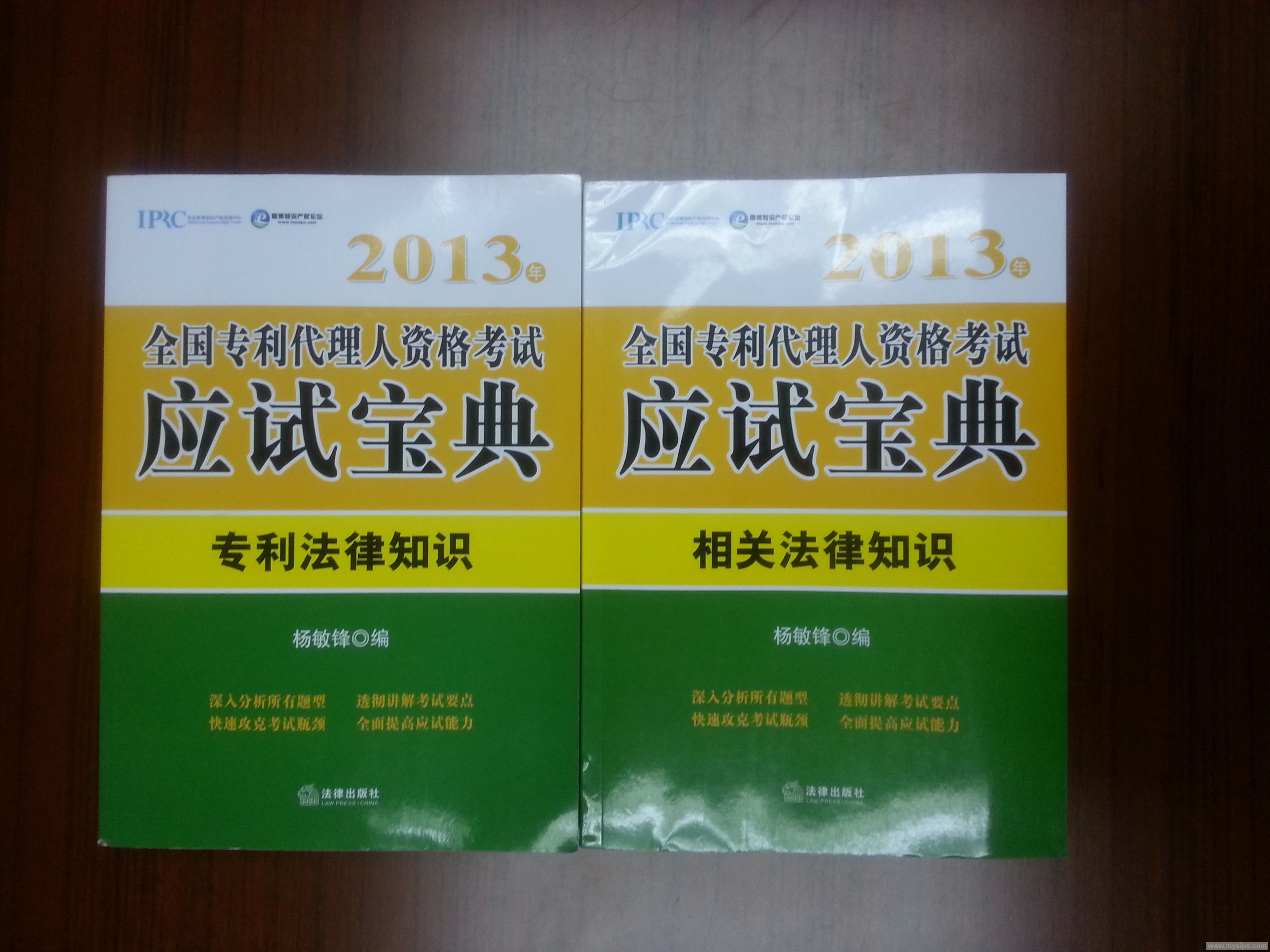 2.以前的版本中,专利法律知识的封面是蓝色,相关法律知识是绿色,不过这是出版社把两本书的颜色都统一设计为绿色了。