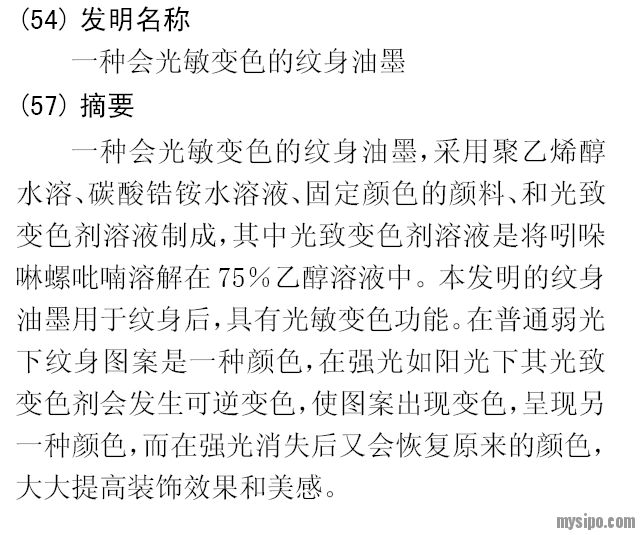3. 纹身用的油墨的配方.油墨的制备方法可以申请发明专利保护