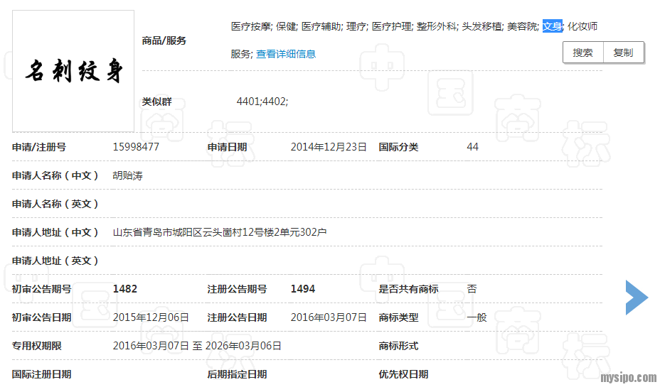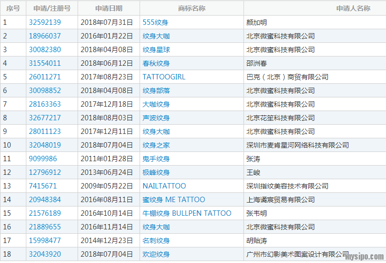 目前提供纹身服务的单位名称一般以XX文化传媒公司出现,或者XX纹身工作室,或者XX纹身馆,这些市场主体如果想获得商标保护,建议在国际分类表中的第44类中注册。【第四十四类】医疗服务;兽医服务;人或动物的卫生和美容服务;农业、园艺和林业服务。具体为4402小组中的-卫生、美容服务(2018版本)中的440197文身,以及文身服务这两个具体服务项目。