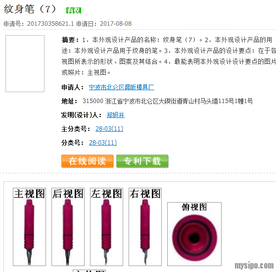 1. 纹身的设备外形可以申请外观设计保护,比如纹身笔、纹身机、纹身针。