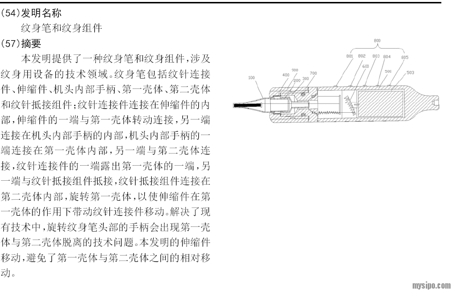 2. 纹身的设备的结构申请发明或实用新型专利保护。