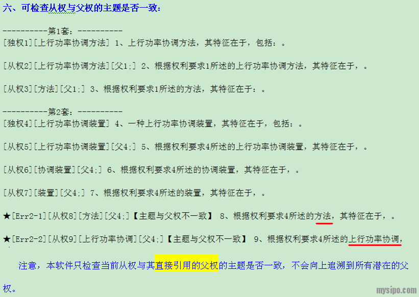 (3)存在非本套的父权编号:例如本权项属于独权6所引领的那套权项,但本权项却引用了权2