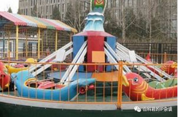 那个时候公园里儿童娱乐设施花样少,几个金鱼形状的舱绕着柱子做圆周运动,同时伴随着在水池里和半空里的振动,就已经是很高级了(就像下图这个挫样子,丑是丑了点)。